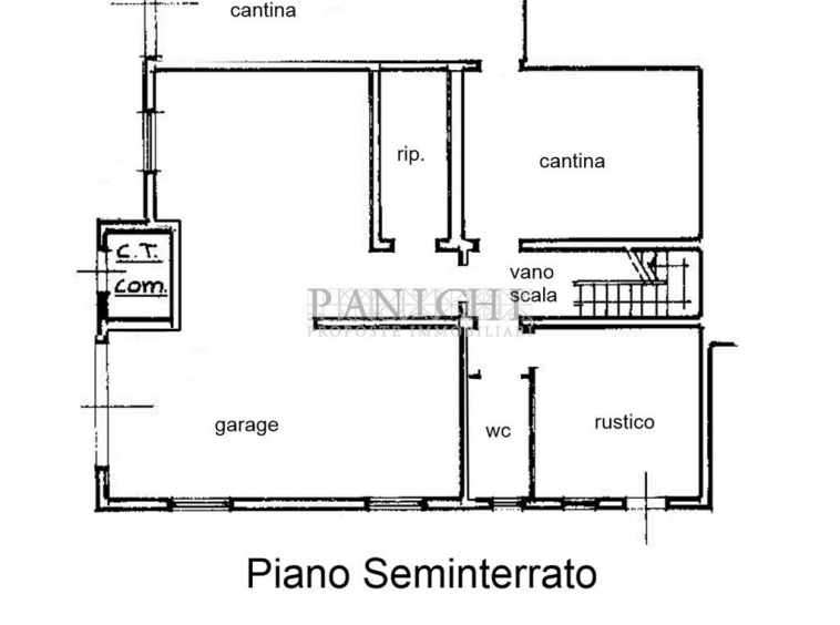 Piano seminterrato: garage doppio, cantina, magazzino, ripostiglio, wc e taverna.
