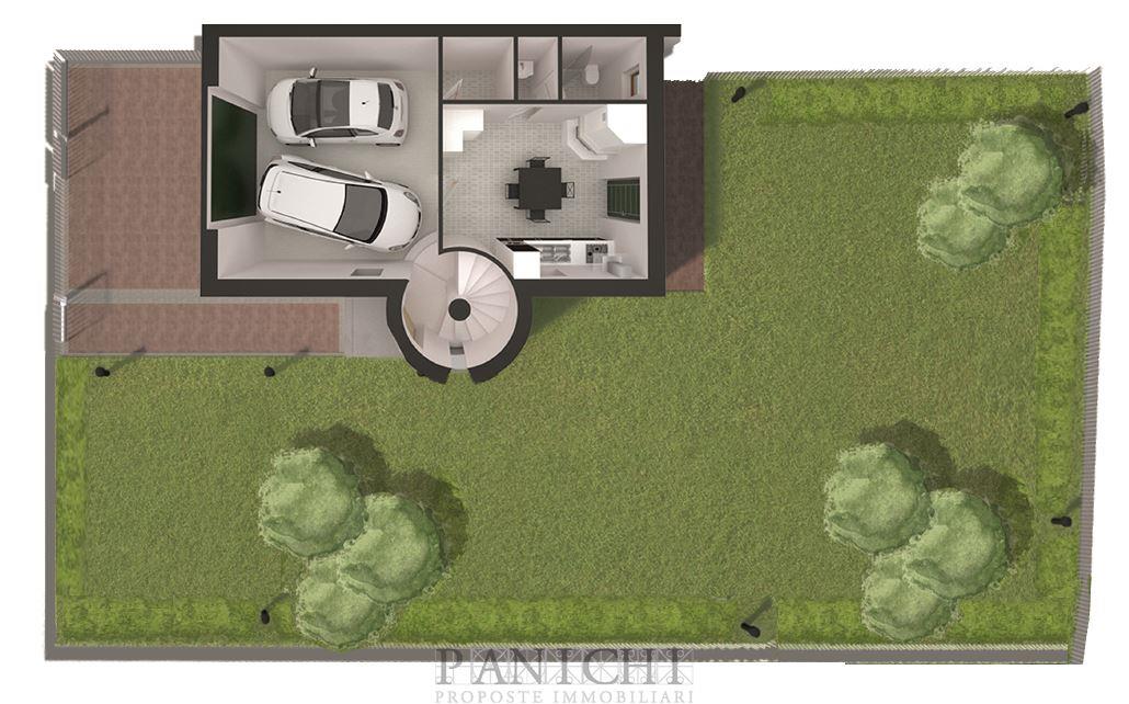 Il terreno esterno al piano terra sarà rifinito in parte a giardino e in parte sarà pavimentato per accedere con l’auto dentro alla proprietà ed anche per realizzare delle zone dove poter collocare gli arredi per soggiornare all’area aperta.