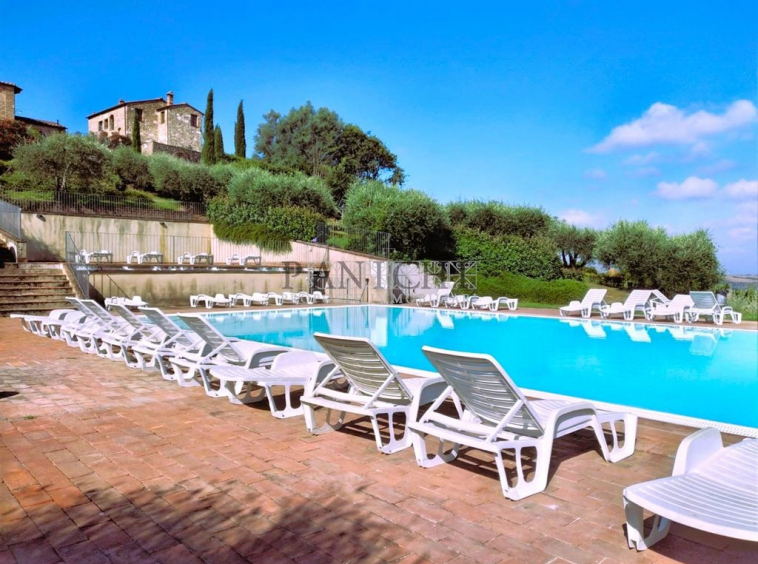 Il piccolo borgo è suddiviso in 27 unità abitative distribuite in più fabbricati ed utilizzate principalmente come seconde case; ogni appartamento ha assegnato n° 2 posti auto esterni esclusivi di proprietà esclusiva e usufruisce oltre che delle zone a verde a pratino e olivi secolari, anche delle due belle piscine ad uso condominiale, di cui una con idromassaggio (3m x 4m) e l’altra di 25m di lunghezza attrezzate con lettini ed ombrelloni.