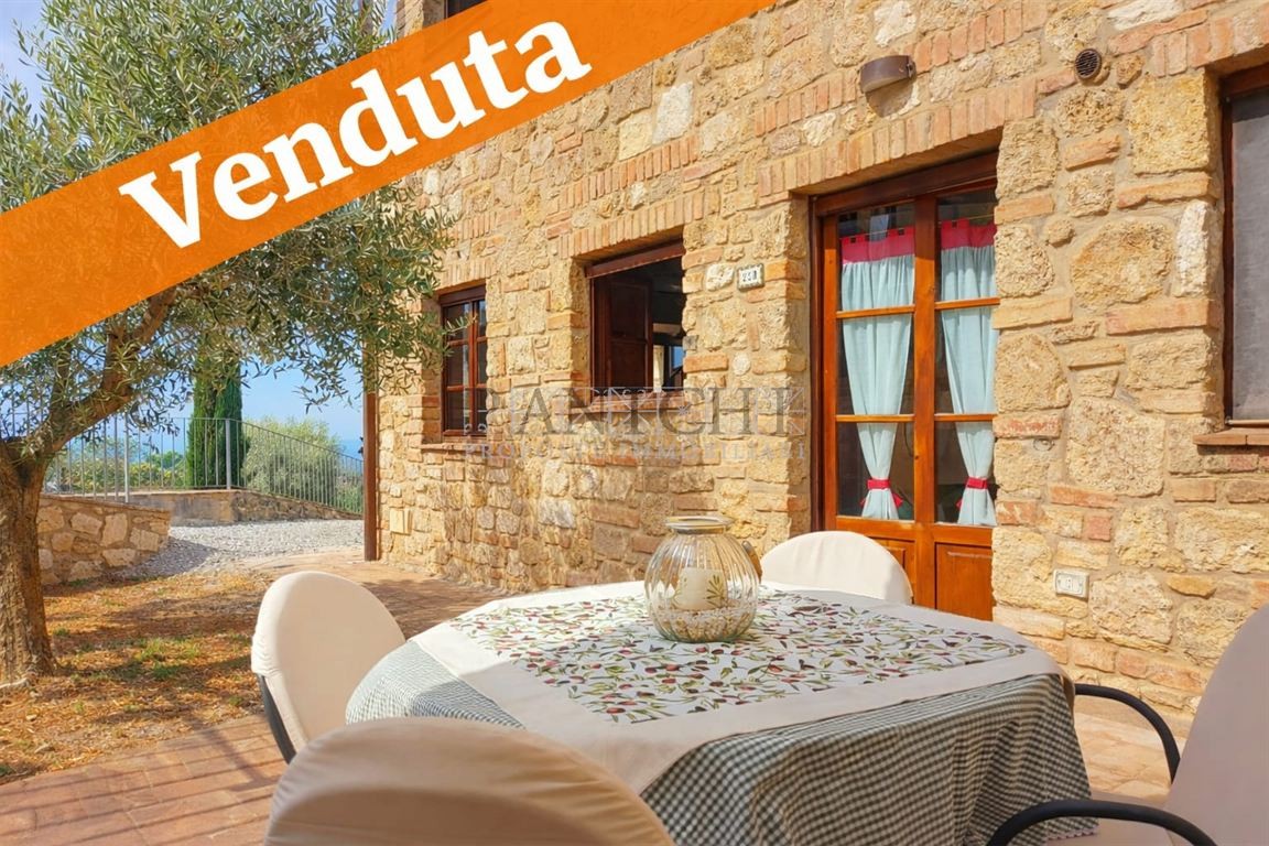 Venduto in posizione panoramica distante solo un paio di chilometri dal caratteristico paese di Asciano, appartamento monolocale, facente parte di un antico complesso poderale ristrutturato nel 2006 con le caratteristiche classiche della tradizione toscana con soffitti a travicelli e mezzane e volticine. L’ appartamento si trova al piano terreno di un dei fabbricati secondari del complesso residenziale, ed ha accesso da resede esterno pavimentato ed esclusivo perfetto come punto relax e zona pranzo nelle giornate d’estate. Internamente troviamo un piccolo ingresso disimpegno, un bagno con doccia oltre al vano soggiorno, molto comfortevole e ben disposto, con cottura a vista, tavolo con 4 sedie, divano letto matrimoniale e pouf che all’occorrenza diventa letto singolo, oltre al mobilio e al caminetto.