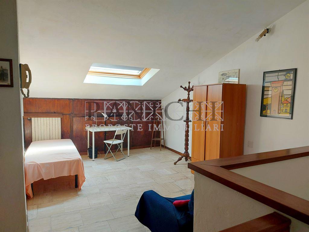 Ad Asciano, in via cittadina appena fuori del centro storico si propone la vendita di appartamento disposto ai piani secondo e terzo mansardato, facente parte di edificio storico edificato nel ‘400. L’intero edificio risulta essere stato sede della prima Stazione di Posta di Asciano essendo ubicato lungo la via Lauretana che un tempo fu un’importante via di transito. Il Palazzo oggi è suddiviso in 5 appartamenti, aventi tutti accesso dalla medesima scala interna. La proprietà in vendita si compone al piano secondo da corridoio d’ingresso, salotto con balconcino, ampio e luminoso soggiorno con caminetto, grande camera matrimoniale, cucina, bagno e doppio ripostiglio, scala in legno che sale per il piano superiore mansardato dove troviamo un soggiorno di piano illuminato da finestra a tetto, camera con illuminazione a tetto, altra camera matrimoniale molto grande, bagno spazioso e ripostiglio. Completano la proprietà cantina e ripostiglio al piano terreno collegati internamente con l’appartamento tramite un androne comune, in passato utilizzato come accesso carrabile per il retro del palazzo, dove ancora oggi si trovano gli abbeveratoi per gli animali a testimonianza dell’importante funzione che ha avuto nel suo passato questo edificio storico.