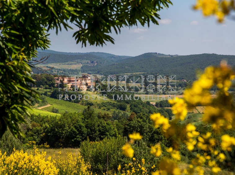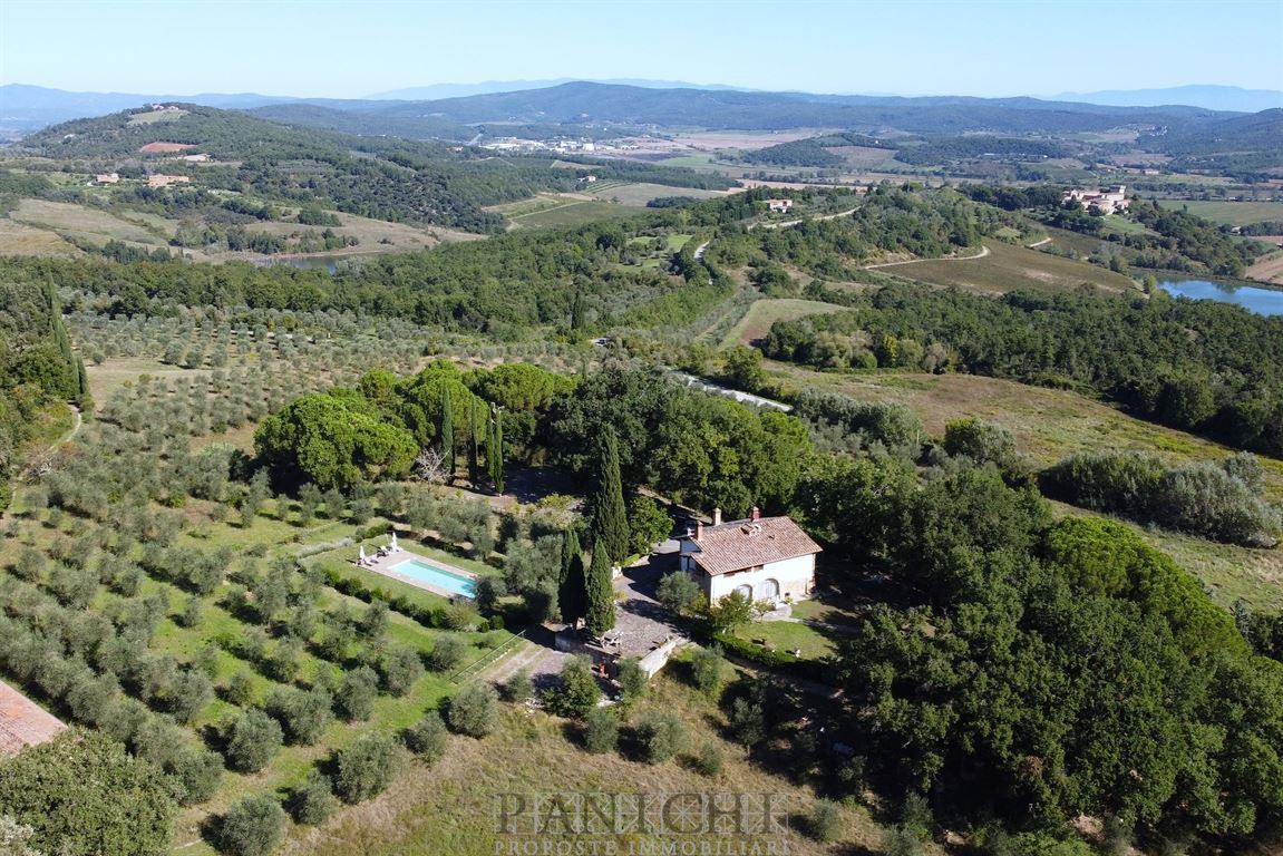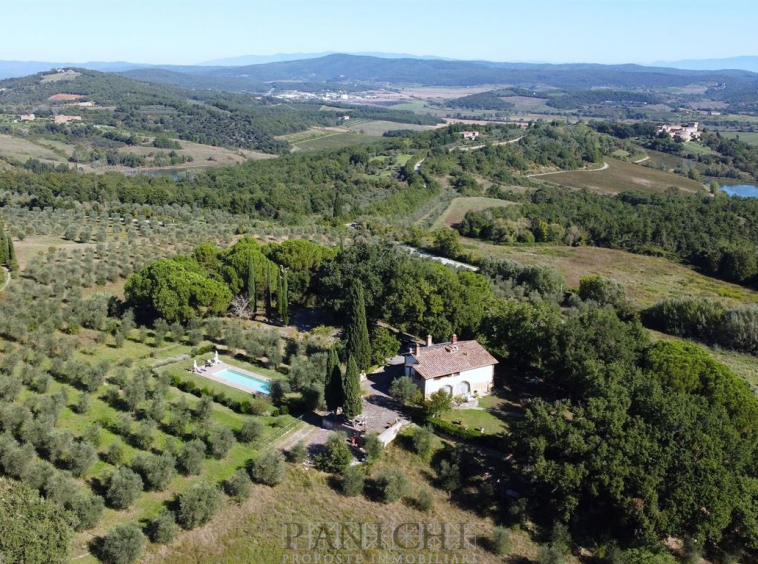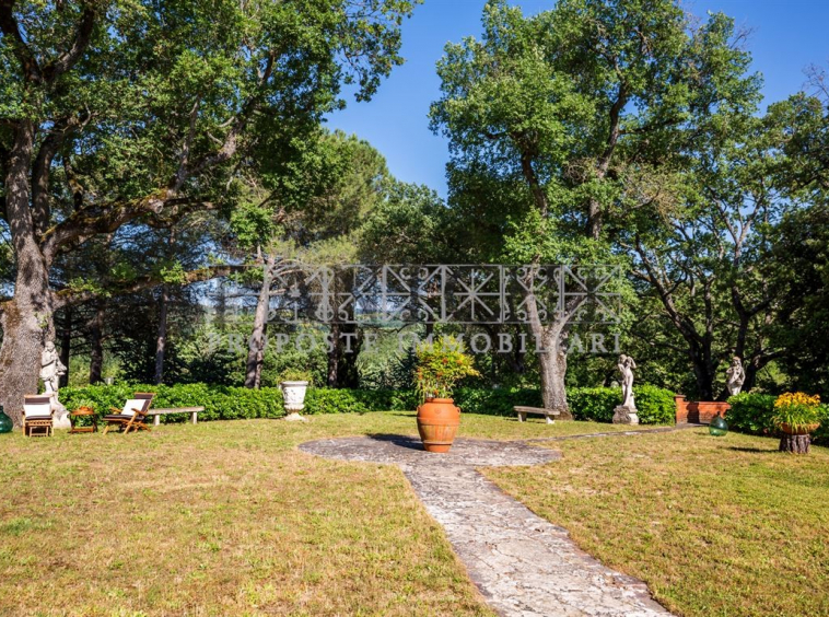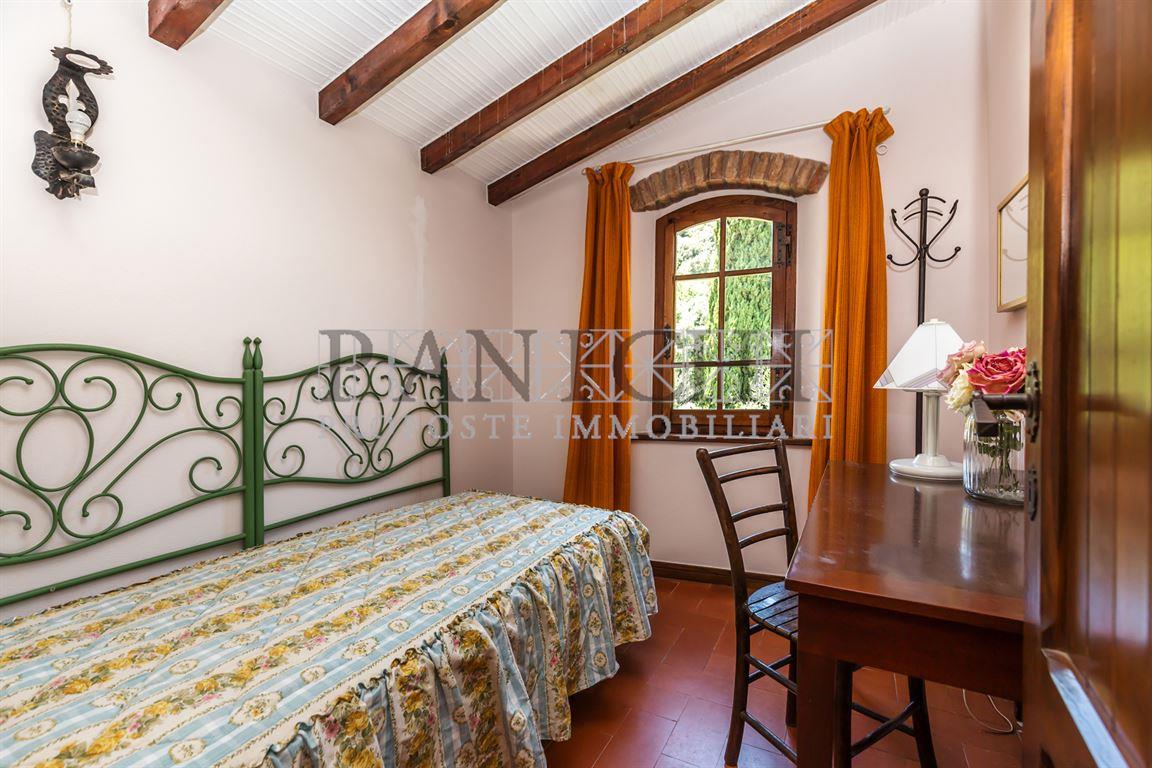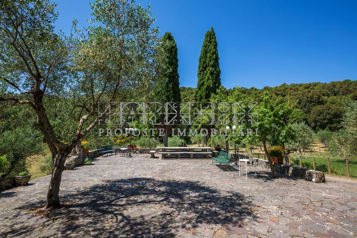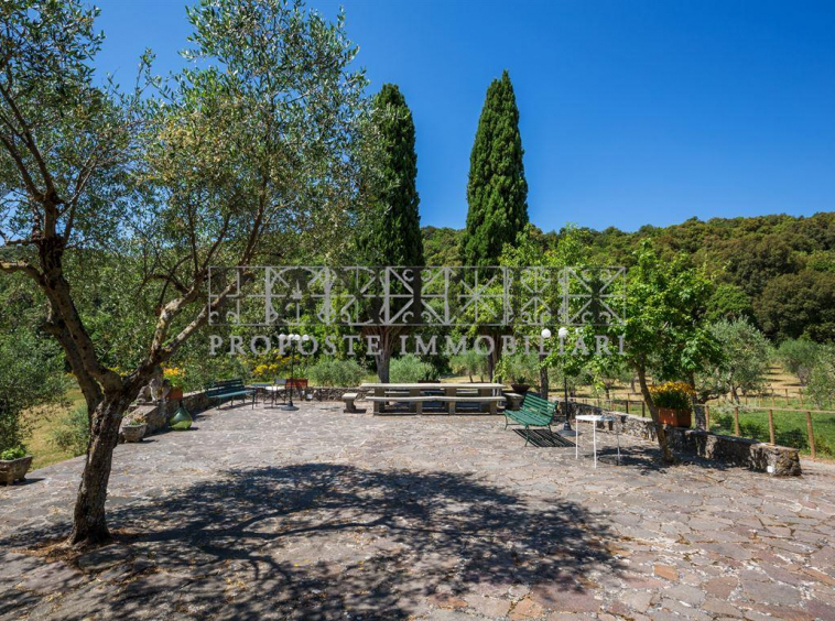 Completano la proprietà un magazzino di circa 165 mq ed un annesso di circa 60 mq con interessanti possibilità di trasformazione e recupero oltre a circa 17 ettari di terreno, in parte ad uliveto (circa 7 ettari) in parte seminativo (circa 4 ettari) ed il restante a bosco.