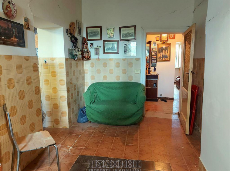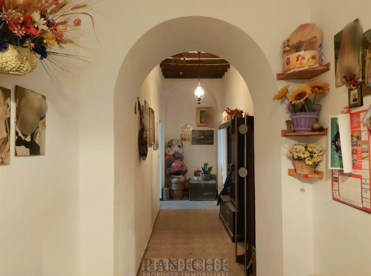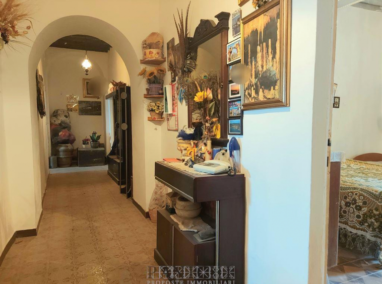 All’appartamento si accede da un corridoio al piano terreno comune con l’appartamento del piano primo e si compone di ingresso, lungo corridoio dal quale si raggiunge la cucina, le 2 camere matrimoniali e l’ampio soggiorno-pranzo. Dalla cucina si accede al bagno e a due vani adibiti a ripostiglio. L’appartamento ha la canna fumaria per il camino che già è presente in cucina ma che può essere realizzato anche nel soggiorno.