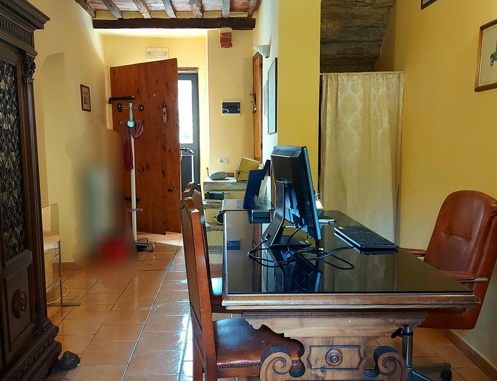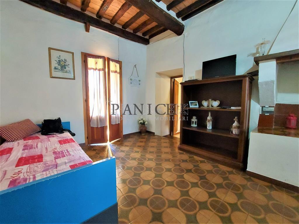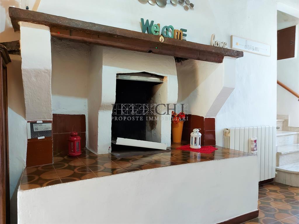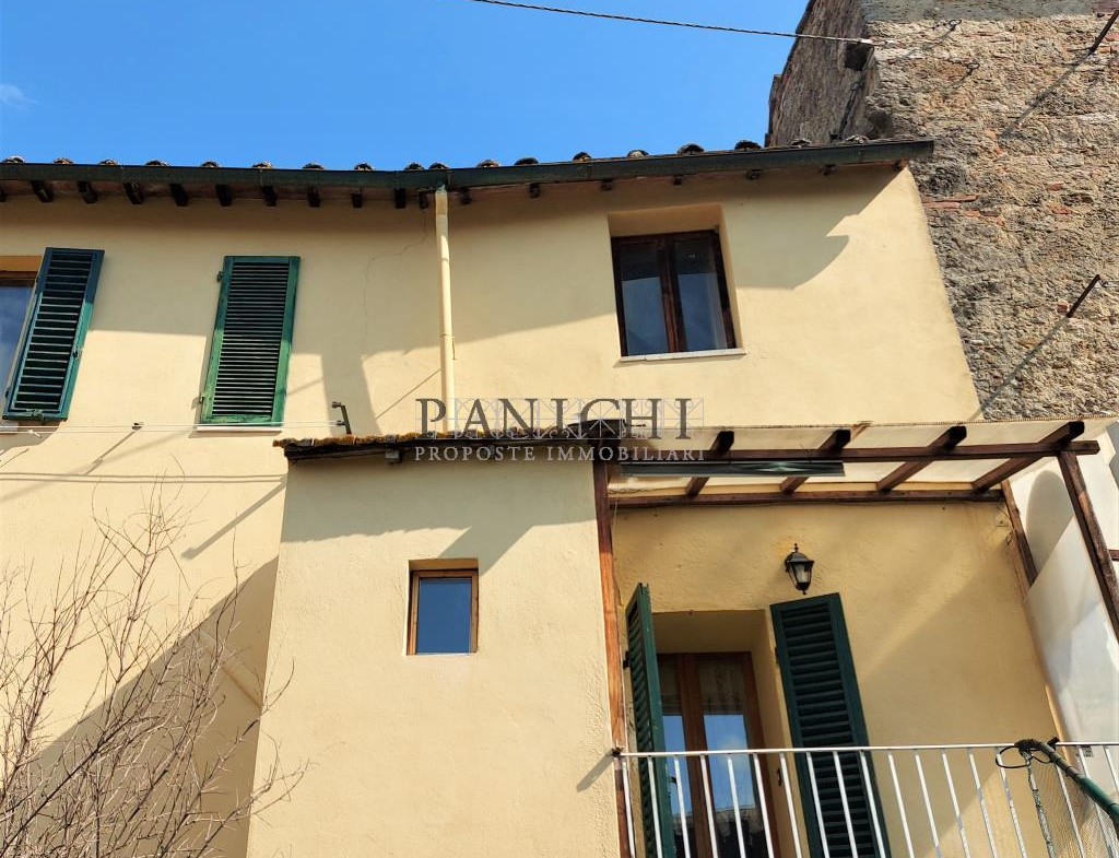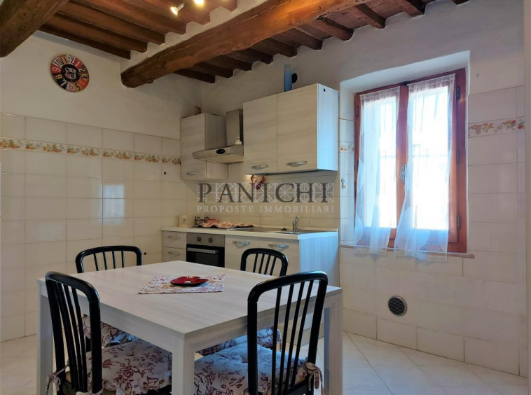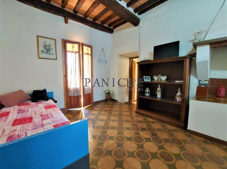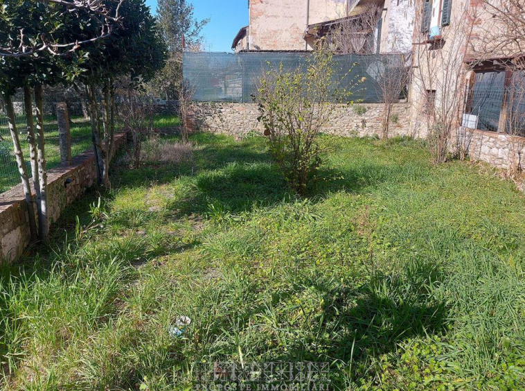 Ad Asciano si propone in vendita proprietà terratetto disposta su 3 livelli con giardino, appena fuori dal centro storico. L’accesso all’appartamento è tramite scala interna direttamente collegata al locale al piano terreno, attualmente ad uso commerciale, dove troviamo due locali con wc e collegamento diretto col giardino. Salendo al primo piano troviamo un salotto con caminetto e balconcino, wc, cucina abitabile, ripostiglio sottoscala, scala in muratura per il piano secondo composto da bagno e da 2 camere matrimoniali. La proprietà è stato parzialmente ammodernata. Le caratteristiche interne presentano le classiche finiture toscane con i soffitti a travicelli e mezzane e gli archi a mattoncini.