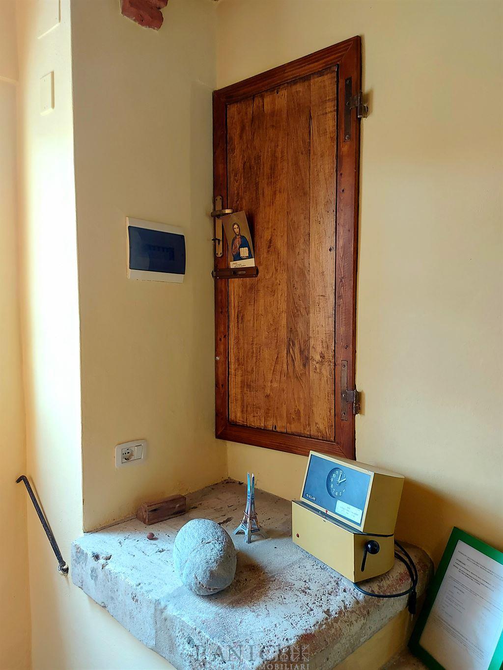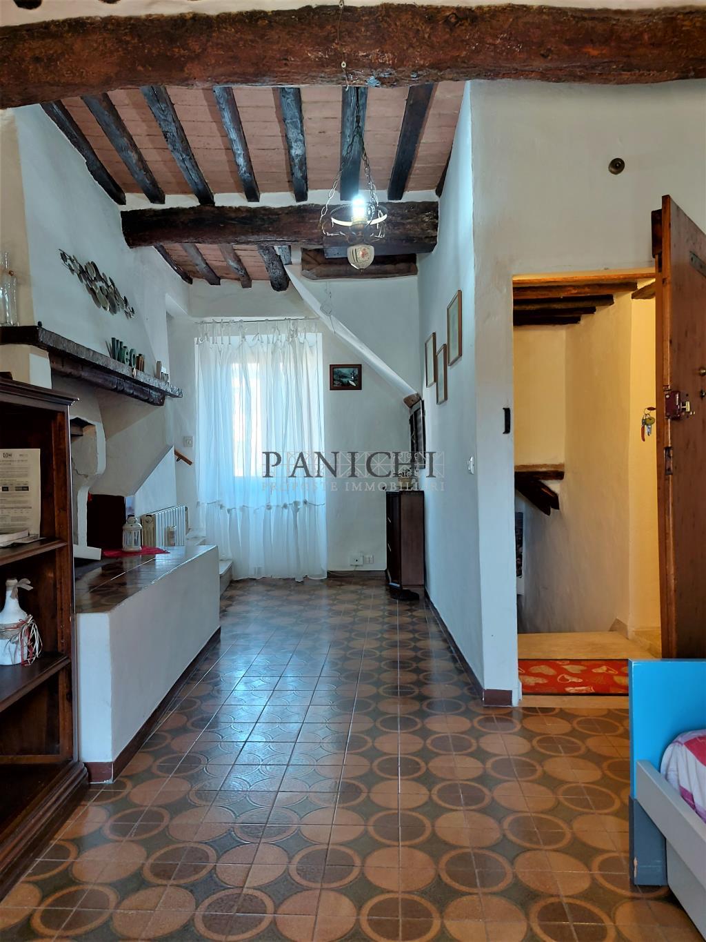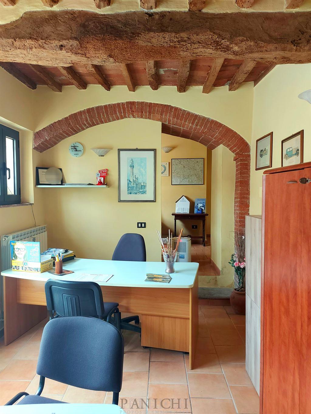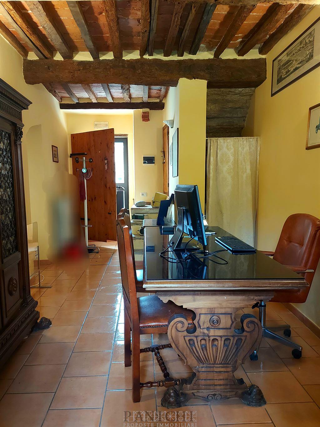 Ad Asciano si propone in vendita proprietà terratetto disposta su 3 livelli con giardino, appena fuori dal centro storico. L’accesso all’appartamento è tramite scala interna direttamente collegata al locale al piano terreno, attualmente ad uso commerciale, dove troviamo due locali con wc e collegamento diretto col giardino. Salendo al primo piano troviamo un salotto con caminetto e balconcino, wc, cucina abitabile, ripostiglio sottoscala, scala in muratura per il piano secondo composto da bagno e da 2 camere matrimoniali. La proprietà è stato parzialmente ammodernata. Le caratteristiche interne presentano le classiche finiture toscane con i soffitti a travicelli e mezzane e gli archi a mattoncini.