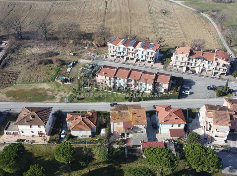L’appartamento si sviluppa principalmente al piano terreno e comprende ingresso, ampia zona living, cucina separata con accesso diretto al giardino sul retro (lato campagna), disimpegno, ripostiglio, bagno, camera matrimoniale e camera singola.